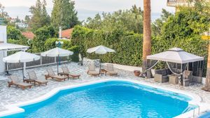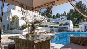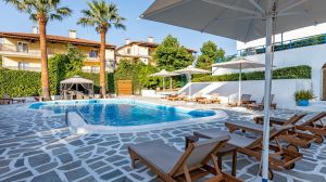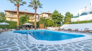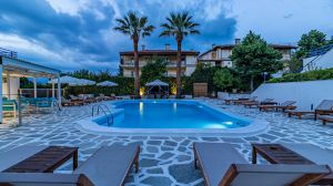 Разположен сред живописните пейзажи на Криопиги, Халкидики, Theo Bungalows е очарователно място за отдих с 45 стаи, въплъщаващи класическия цикладски стил. Заобиколен от буйна борова гора, хотелът се радва на спокойно място само на 600 метра от един от най-спиращите дъха девствени плажове на Касандра, предлагащ естествена сянка за пълна релаксация. Имотът се гордее с редица удобства, включително освежаващ басейн, уютен бар и приветлив ресторант, обещаващи на гостите приятен престой. Със своята спокойна атмосфера и уютни помещения за настаняване, Theo Bungalows гарантира незабравимо лятно преживяване. Центърът на град Криопиги е на кратко разстояние от 600 метра нагоре по хълма, а летище Солун е удобно разположено на 82 километра, което осигурява лесен достъп до този рай от природна красота и лукс. Независимо дали търсите утеха сред природата или луксозно бягство, това място е готово да ви осигури незабравимо преживяване при почивка.
