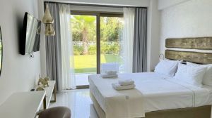 Лагуна Ризорт е елегантен първокласен плажен хотел, разположен точно на брега на Егейско море, близо до Ханиоти, космополитно село на полуостров Касандра в Халкидики, една от най-популярните туристически дестинации в Гърция. В баланс и с уважение към природата, хотелът е построен в началото на 2019 г., като са използвани само висококачествени и екологично чисти материали. С международното летище в Солун само на 90 километра, този хотел е идеалното място за тези, които искат да разгледат полуострова и да се насладят на неговите зашеметяващи гледки и плажове.