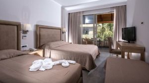 Cactus Beach Hotel предлага тераса с морски изглед и големи стаи. Всички климатизирани стаи в Cactus Beach Hotel разполагат с голям балкон или тераса, сателитна телевизия и малък хладилник, самостоятелна баня със сешоар.