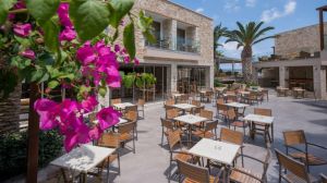 Просторната тераса в градината с бели чадъри предлага спокойна обстановка за следобедно питие или местна храна. Има също закрита трапезария.