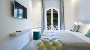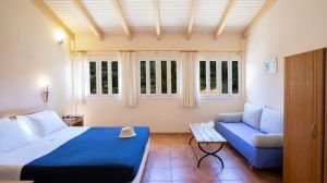 Одисей е приятен семеен хотел в цъфтяща градина, разположен на полегат склон, в началото на главната улица, в традиционното гръцко село Агиос Никитас, което е пълно с популярни таверни и ресторанти. От 1990 г. насам Одисей предлага уникално преживяване на елинското гостоприемство, с минималистичен дизайн на стаите, автентична гръцка закуска, открит плувен басейн със зони за релакс и забавления на слънце. От другата страна на главната улица ще стигнете до плажа на селото с кристално чиста вода, който е на около 150 м. Други красиви плажове на острова, като Пефкулия или Милос, се намират само на няколко минути пеша; възможно е да се използва лодка-такси.
