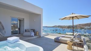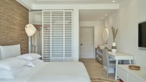 Суитите в хотела са оборудвани с тераса с изглед към Егейско море, кафемашина и хладилник. Някои стаи имат собствен басейн.