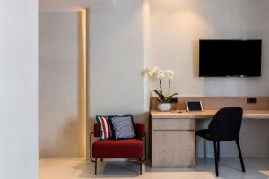 Климатизираните стаи в хотела разполагат с бюро, кафемашина, хладилник, минибар, сейф, телевизор с плосък екран, балкон и самостоятелна баня с душ. Помещенията за настаняване разполагат с гардероб.