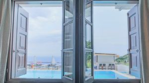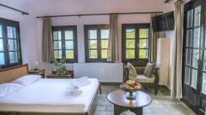 Просторните помещения, елегантно обзаведени в традиционен гръцки стил, предлагат автентично преживяване. Обзавеждането на всички климатизирани стаи отразява местните традиции. Всички стаи са с балкон. Стандартните удобства включват телевизор и минибар. Някои типове стаи имат легла с 4 колони и гледка към плажа Милопотамос.