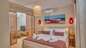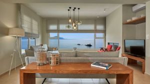 Olivia Sports and Sea предлага изглед към морето и помещения за настаняване с частен плаж, инфинити басейн и градина, на около 200 метра от плажа Лефки. Този крайбрежен хотел предлага достъп до тераса, безплатен частен паркинг и безплатен WiFi. Стаите разполагат с балкон с изглед към планината.