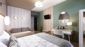 Климатизираните стаи в хотела разполагат с бюро, кафемашина, хладилник, сейф, телевизор с плосък екран и собствена баня с душ. Всички стаи разполагат с електрическа кана, а някои имат балкон, а други са с изглед към града. Всички стаи за гости разполагат с гардероб.
