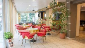 Ресторантът на хотела е с капацитет 180 места, предлагайки полупансион или пълен пансион. Освен това, има балканска таверна, където можете да се насладите на вкусовете на неизбежния гръцки гирос и други специалитети от традиционната гръцка кухня. Освен това, нашият готвач предлага избрани ястия от сръбската и румънската кухня. С една дума, Балканите.