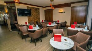 Ресторантът на място предлага европейска и кавказка кухня, а плажуващите могат да се насладят на изобилие от освежителни напитки, докато релаксират на шезлонги под чадъри. Благоприятното местоположение на хотела улеснява достъпа до манастирите Метеора и Атон, както и до археологическия обект Дион. THEMIS BEACH е достъпно убежище за пътуващите, търсещи комфорт на морето и опознаване на Паралия Катерини.