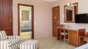 Хотел Evdion предлага класически, климатизирани стаи, оборудвани с плазмен телевизор със сателитни канали, минибар, сейф, телефон с директно избиране и сешоар. Балконите предлагат гледка към басейна, морето или планината Олимп.