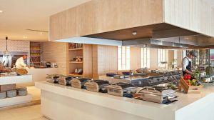 Гостите могат да избират между голямо разнообразие от заведения за хранене, включително средиземноморски бюфет-ресторант, гръцка таверна, италиански ресторант край басейна и ресторант за гости с ливанска кухня, разположени на самия бряг. В 4-те бара на комплекса се предлагат неограничени напитки от здравословни сокове до първокласни марки. През целия ден се предлагат различни леки закуски, кафе и сладкиши.