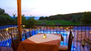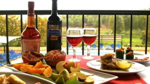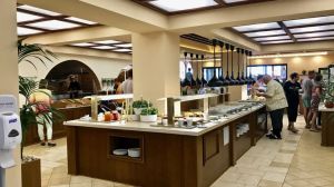 Закуска на шведска маса се сервира в трапезарията с гледка към басейна. Обядът и вечерята включват салати, гръцки ястия и местни вина. Напитки и кафе се предлагат в бара край басейна и в основния бар на закрито.