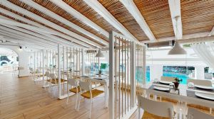 Гостите могат да започнат деня си със сертифицирана гръцка закуска и да опознаят гръцката кухня с гурме пътешествие Acrotel Dine Divine в 5-те тематични ресторанта. Един от ресторантите – Hierion – е носител на награда в категория „Гастрономия“ на Туристическите награди за 2018 г. за уникалната си ресторантска концепция. Тя пресъздава „трапеза“ – трапезарията на манастирите в Атон. На място има и 5 бара.