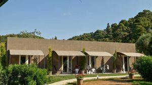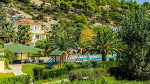 Разположен в маслинова горичка, заобиколен от зелен хълм, Koviou Holiday Village е 3-звезден, спокоен семеен хотел, само на 5 минути пеша от плажа Акти Ковиу. Разположен върху 14 акра зеленина, маслини и палми, този хотел се състои от основна сграда с рецепция и ресторант и 4 сгради с помещения за настаняване, обграждащи плувен басейн, детска площадка и бар край басейна. Разположен само на 6 км от Никити и на 13 км от космополитния Неос Мармарас, Koviou Holiday Village е идеално разположен в сърцето на Ситония. Акти Ковиу е един от най-красивите плажове на Ситония, с бял пясък, плитка вода и малка борова горичка, предлагаща естествена сянка през лятото.