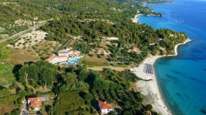 Сгушен в почти частен залив на широкия и дълъг бял пясъчен плаж Акти Ковиу, хотел Македнос е 3-звезден семеен имот. Идиличният му пейзаж, където гъстата растителност от борове среща синьо-зеленото море на фона на скалистите планини, се намира само на 6 км от Никити и на 13 км от космополитния Неос Мармарас, а летище Солун е на 105 км. Хотелът се състои от две сгради с изглед към сапфирено синия залив, разполагащи с рецепция, ресторант, открит плувен басейн с мокър бар и по-малък басейн за деца, бар край басейна, детска площадка и паркинг. Плажът е достъпен по неасфалтирана пътека, на 100 метра, където ще намерите шезлонги и чадъри срещу малка такса.