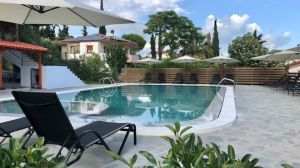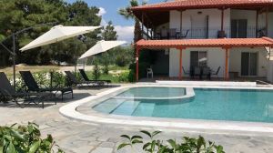 Разположен в реновирана вила, само на 130 м от плажа, Village Mare Metaxia се състои от три луксозни апартамента: два на партерния етаж с площ от 50 м2 и един, обхващащ целия горен етаж с площ от 100 м2. Всички са напълно обзаведени и разполагат с всичко необходимо за комфортен престой. Отпуснете се край частния басейн, на балкона или терасата и се насладете на закуската си, докато се наслаждавате на прекрасната гледка към зелената ни градина и залива Торонеос. След това се разходете до плажа за плуване.