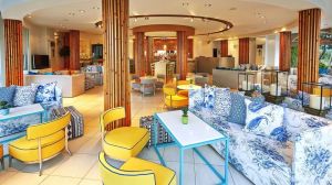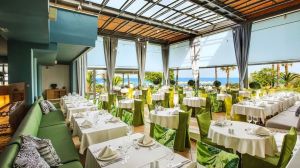 Гостите могат да се насладят на питие в плажния бар Atrium или в бар Palms до басейна, с гледка съответно към морето или басейна. Хотелът разполага с 2 ресторанта, сервиращи средиземноморска и международна кухня.