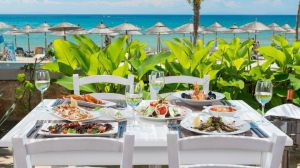 Ресторант Olive Garden се намира до маслинова горичка и предлага закуска на шведска маса и средиземноморска кухня, а а ла карт таверната предлага морски ястия край морето. Гостите могат да се насладят на напитки след вечеря в бара на Captain’s, докато се любуват на гледката към брега.