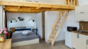 Помещенията за настаняване са климатизирани, с бюро, електрическа кана, хладилник, кухненски прибори и съдове, сейф, плоскоекранен телевизор, тераса и самостоятелна баня с вана, оборудвани са със спално бельо и хавлии. Всички те имат вътрешен двор с открита зона за хранене и изглед към планината.