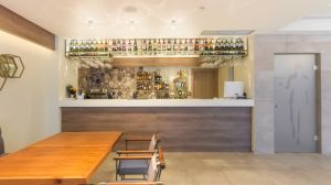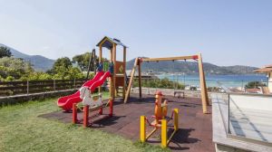Барът край басейна сервира напитки и кафе. По-малките гости могат да се забавляват на детската площадка.