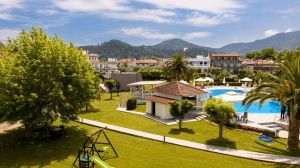 Предлагащ открит басейн, бар край басейна и тенис корт сред цъфтящата си градина, хотел Aethria е централно разположен в град Лименас на остров Тасос. Климатизираните хотелски единици разполагат с балкони с гледка към басейна, градината или околностите.