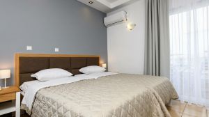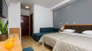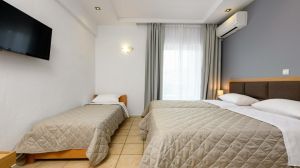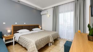 Стаите на Aethria имат декор в меки цветове и облицовани с плочки подове, хладилник, телефон и телевизор с кабелни канали. Всяко помещение за настаняване включва самостоятелна баня с душ и сешоар.