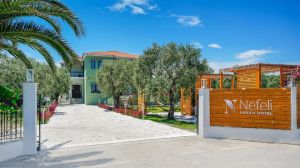 Nefeli Fresh Hotel by Del Mare се намира в Скала Рахониу, на 300 метра от плажа Скала Рахониу. Предлага помещения за настаняване със сезонен открит плувен басейн, безплатен частен паркинг, градина и общ салон. Хотелът разполага с бар и се намира в близост до няколко известни забележителности, на около 400 метра от плажа Ариба и на около 1,1 километра от плажа Платана. На разположение на гостите има денонощна рецепция, летищни трансфери, рум-сървиз и безплатен WiFi на цялата територия.