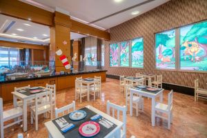 Всеки ден се сервира закуска на шведска маса. Можете да опитате азиатска и средиземноморска кухня и местни ястия като кебап. В баровете се сервират освежаващи напитки и леки закуски.
