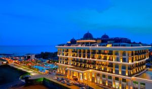 Serenity Queen Hotel се намира в Алания, на 1 километър от плажа Конакли. Предлага помещения за настаняване с градина, безплатен частен паркинг, частен плаж и ресторант. Този 5-звезден хотел предлага безплатен WiFi, детски клуб и рум-сървиз. На разположение на гостите има сезонен открит плувен басейн, заседателни и банкетни зали, фитнес център, тераса, сауна, турска баня и воден парк.