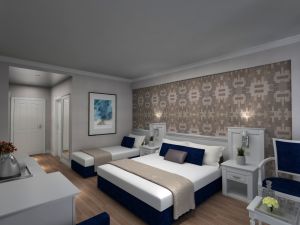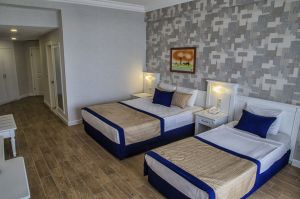 индивидуален климатик, баня с вана/душ, сешоар, телевизор, телефон, мини-бар, сейф, балкон, почистване на стаите – ежедневно, смяна на спалното бельо – 3 пъти седмично. Плаж: собствен, пясък/чакъл, платформа. На плажа и при басейна: чадъри, шезлонги - безплатно, матраци - платено. Плажни кърпи - платено.