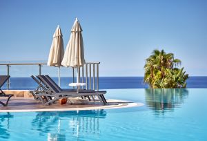 Всяка стая разполага с климатик, сейф, балкон и минибар. Включва също собствена баня, снабдена със сешоар и безплатни тоалетни принадлежности. Стаите са с гледка към морето и басейна.