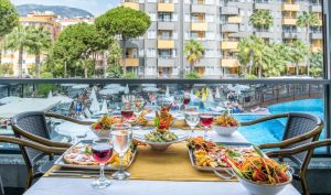 Основният ресторант на 7-ия етаж сервира турска и международна кухня на фона на панорамен морски изглед. В а ла карт ресторанта ще Ви предложат османски и средиземноморски ястия. Можете да се насладите на освежителни напитки в бара край басейна, в лоби бара и на плажния бар.