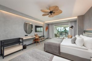 Стаите са декорирани в съвременен стил и са оборудвани с телевизор, климатик и безплатен WiFi. Всяка има собствен балкон. Някои са с изглед към морето.