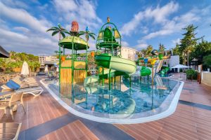 Основен ресторант, а-ла-карт ресторант, снек ресторант, 5 бара, открит басейн, водни пързалки, SPA център със закрит басейн, анимация, безжичен интернет, частен паркинг.