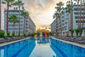 Този 5-звезден хотел се намира на брега в Алания. Той разполага с голям открит басейн с тераса с шезлонги и предлага климатизирани стаи с балкон с панорамен изглед.