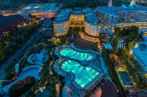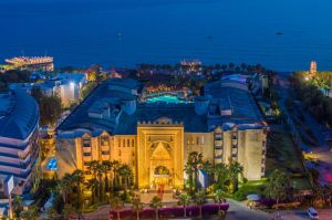 Разположен директно на брега в средиземноморския регион, хотел Mukarnas Spa & Resort предлага частен пясъчен плаж, открити басейни, водни пързалки и СПА съоръжения. Хотелът разполага с архитектура, вдъхновена от селджукските турци.