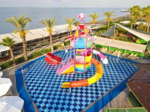 Разположен директно на плажа в курорта Белек-Богазкент, този 5-звезден комплекс предлага модерни стаи със собствени балкони. Сред наличните удобства са открити басейни, аквапарк с водни пързалки и СПА център.