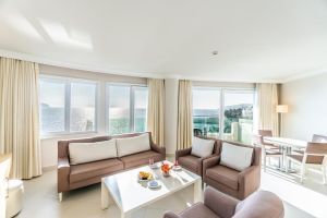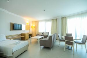 Климатизираните стаи в хотел Drãgut Point South имат балкони с гледка към морето. Всяка включва плоскоекранен интерактивен телевизор със сателитни канали, хладилник и сейф. Баните са оборудвани с хидромасажна вана, сешоар и безплатни тоалетни принадлежности.