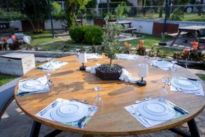 Ресторантът на хотела е разположен край басейна и предлага турска кухня. Гостите могат да се насладят на храната си, докато се любуват на изгледа към басейна и ботаническата градина. Барът сервира разнообразни напитки по всяко време на денонощието.