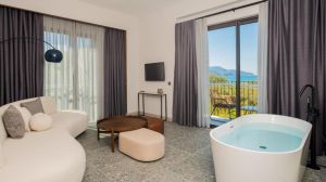 Jiva Beach Resort се намира в град Фетие и предлага настаняване на база ол инклузив. Този комплекс е разположен на площ от 35 000 кв. м и на територията му има естествено езеро и 5 плувни басейна, включително басейн с различни забавни атракции, басейн с пързалки и басейн в зона със спокойна атмосфера. На място има възможност за многобройни занимания, сред които билярд, дартс и тенис на маса. Осигурени са безплатен WiFi и денонощна рецепция.