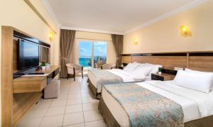 Основен ресторант, 2 бара, 3 открити басейна, водни пързалки, дискотека, игрална зала, СПА център, паркинг. За децата: детски басейн, детски площадка, водни пързалки, мини клуб (4-12 г.). Безплатни услуги: турска баня, сауна, тенис на маса, плажен волейбол, баскетбол, софт анимация. Платени услуги: масаж, фризьор, лекар, водни спортове. Плаж: собствен пясъчен. Чадъри, шезлонги и матраци на басейна и плажа - безплатно, плажни кърпи - срещу депозит.