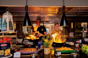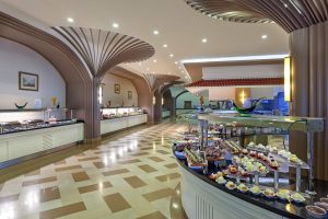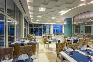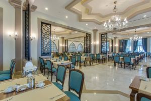 Хотелът предлага ултра ол инклузив обслужване, което включва безплатно хранене във всички ресторанти на комплекса и избрани напитки. Гостите могат да се насладят на турски, италиански, китайски или рибни специалитети в а ла карт ресторантите. Баровете сервират разнообразни напитки през целия ден.