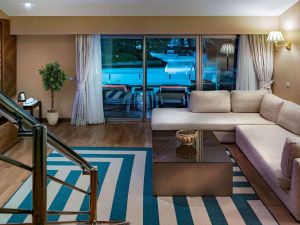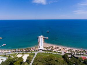 Този обширен хотелски комплекс с площ от 250,000 м² се намира на морския бряг в залива Анталия и предлага плаж с дължина 720 метра, собствен СПА център, аквапарк и елегантно обзаведени стаи за гости със собствен балкон.