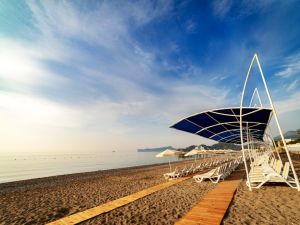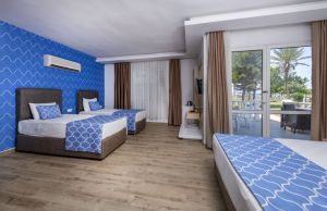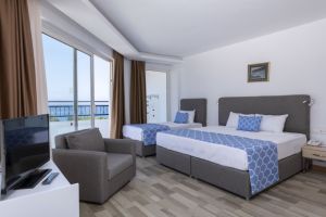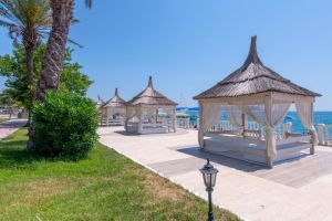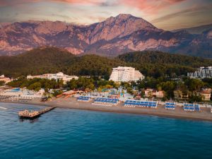 Този крайбрежен хотел се намира на брега на Средиземно море и разполага с частен плаж и големи открити басейни с водни пързалки. Удобствата включват СПА център със сауна, фитнес зала и турска баня.