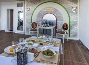 Основният ресторант предлага турска и интернационална кухня на шведска маса като закуска, обяд и вечеря. Снек-барът предлага освежаващи напитки и традиционни турски ястия, включително турска пица.