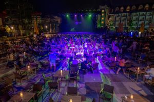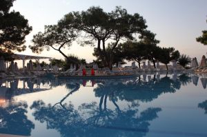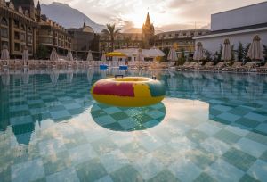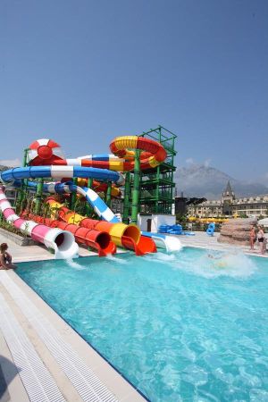 Този крайбрежен хотел предлага частен плаж със син флаг на брега на Средиземно море. Хотелът разполага с 2 открити басейна с водна пързалка, фитнес зала и СПА център.