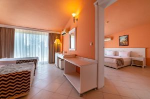 Основен ресторант, бар, 3 открити басейна, водна пързалка, WI - FI (в лоби). За децата: Детски басейн, мини клуб (3-12 г.), детска площадка. Безплатни услуги: Сауна, турска баня, фитнес, тенис на маса, плажен волейбол, аеробика, анимация. Платени услуги: Масаж, СПА център, фризьорски и козметичен салон, химическо чистене, магазини. Плаж: Собствен, пясъчен. Чадъри, шезлонги и матраци на плажа и при басейна - безплатно.
