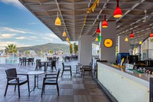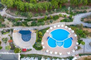 Собствен пясъчно-чакълест плаж с платформа и кей. Бар на плажа. 3 открити басейна с прясна вода, неотопляеми, 529 кв.м, 970 кв.м. 1 закрит басейн с прясна вода, 72 кв.м (затворен през юли и август). 3 водни пързалки (неотопляеми) + детски аквапарк.