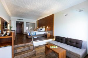 Състои от една основна сграда (8 етажа), комплекс от бунгала (2 и 3 етажа, без асансьор), в които са разпределени 352 климатизирани стаи. От тях н хотелската част: 96 Superior Sea View Rooms (25 кв.м) и 48 Junior Suites Sea View ( 32 кв.м). В клубната част: 142 Bungalow Garden View (25 кв.м), Family Room Bungalow Garden View ( 2 спални, 30 кв.м), Family Suite Bungalow Garden View ( 2 спални, всекидневна, 41 кв.м).Всички стаи са оборудвани с телевизор, телефон, сет за чай/кафе, минибар (безплатен), сейф (безплатен), баня с душ, сешоар, балкон или тераса, Wi-Fi. Стаите се почистват всеки ден, смяна на бельото и кърпите – 2 пъти в седмицата..