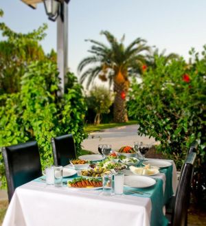 Закуската е на шведска маса и може да се консумира в ресторанта или на покритата тераса. Обяд, вечеря и рум-сървиз са на разположение, на място има и бар.