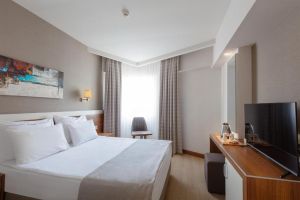 Стаите в Lara Grand Park са обзаведени с модерни мебели. Всички стаи ползват самостоятелна баня с безплатни тоалетни принадлежности. Сейфът е стандартно удобство. Всяко помещение за настаняване има изглед към града, градината или морето.
